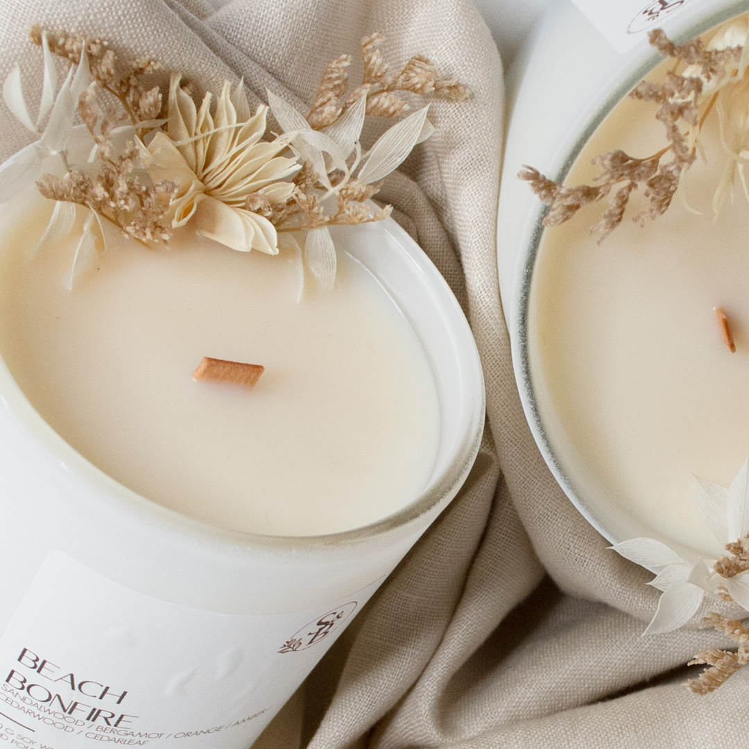 Hand crafted in Sydney by Carmen, Salt & Bare candles and melts are uniquely created and scented to transform your space into a sensory escape. Travel to the beach around a hot bonfire with friends, stroll through blossom filled gardens with a loved one and watch a golden sunrise on an autumn morning. All candles are made from 100% soy wax and all vessels and container are reusable and recyclable.